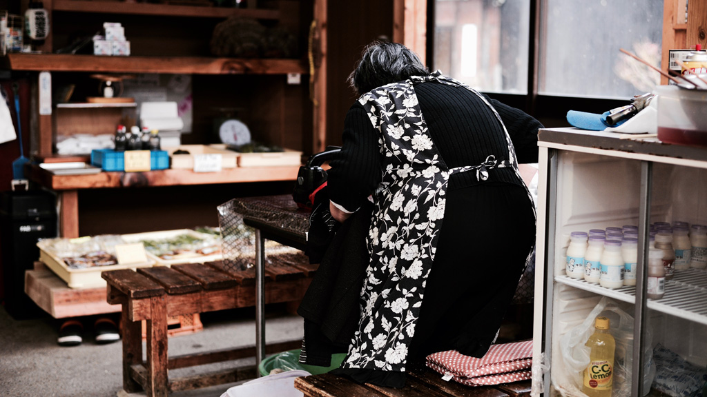 旅館的工作人員非常鄭重地歡迎我們的到來,在旅館的入口處,有位爺爺正在用日本傳統圍爐烤魚,這種方式看上去非常傳統卻很新穎。近來,家家都在用煤氣或是烤箱來料理,但這裡依舊是用碳烤的傳統方式。魚看上去非常新鮮美味,被午後的陽光照得讓人食慾大增呢。